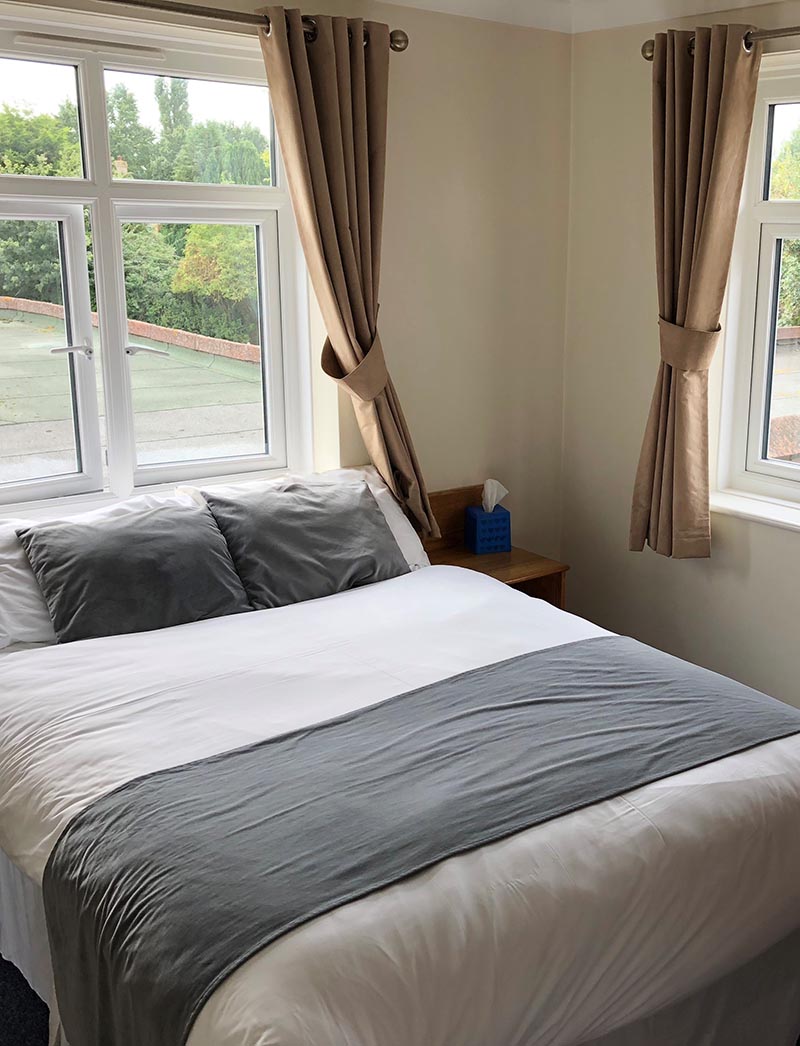 We have three large double rooms and two twin double rooms onsite, all rooms are en-suite TV and storage.